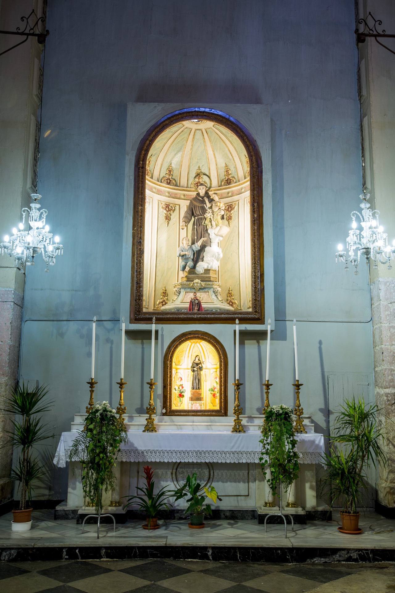 De manera particular, esta devoción es muy significativa en la Basílica de la Asunción de Nuestra Señora de Llíria, donde se celebran con fervor los conocidos trece martes de San Antonio, práctica piadosa que prepara espiritualmente a los fieles para su festividad. La imagen del santo ocupa la primera capilla en el lado del baptisterio; se trata de una obra realizada en 1960 por el escultor Ramón Graner Pasqual, que supo plasmar con sobriedad y ternura la figura del fraile franciscano sosteniendo al Niño Jesús, en la parte baja de la escultura se encuentra una imagen de un niño sosteniendo una azucena (símbolo de castidad y pureza) y un pan recordando el milagro que san Antonio realizado con los mas pobres. El santo lleva en su cíngulo un rosario, regalado por la familia que cuida del altar y hecho con restos de los olivos de Tierra Santa.