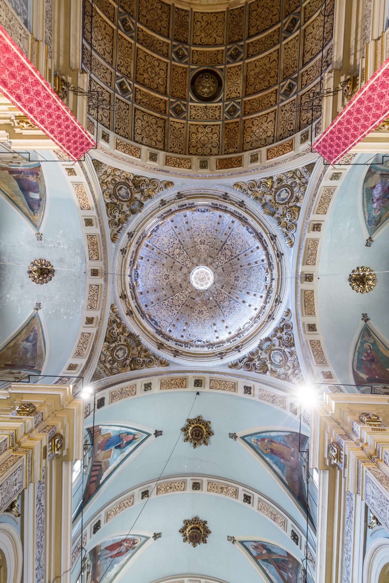 La cúpula de la Basílica de la Asunción de Nuestra Señora de Llíria se erige como uno de los elementos más singulares del conjunto arquitectónico, tanto por su riqueza artística como por su protagonismo dentro del espacio litúrgico. Situada sobre el amplio crucero, se alza sobre un tambor octogonal que descansa sobre pechinas, recurso característico del barroco que permite elevar la estructura y dotarla de una mayor presencia y luminosidad.